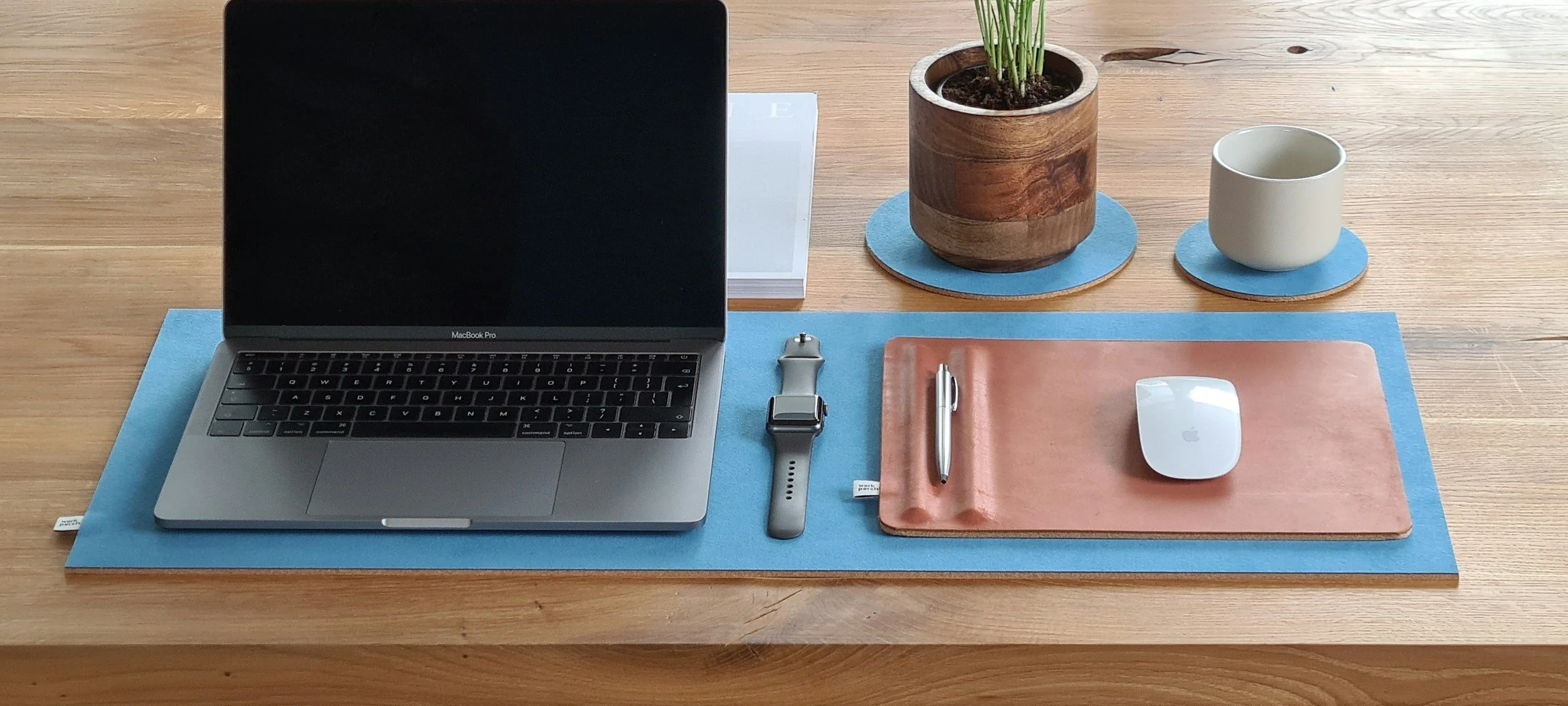 Opt for a wooden desk, natural elements, and give yourself the best environment for a productive work day ahead!